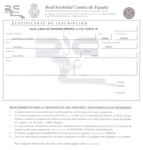 Nuestros ejemplares disponen de L.O.E. (Libro de Orígenes Español), lo que garantiza su inscripción en la Real Sociedad Canina de España y la trazabilidad de su línea genética (excepto el color blanco, no reconocido por la FCI).